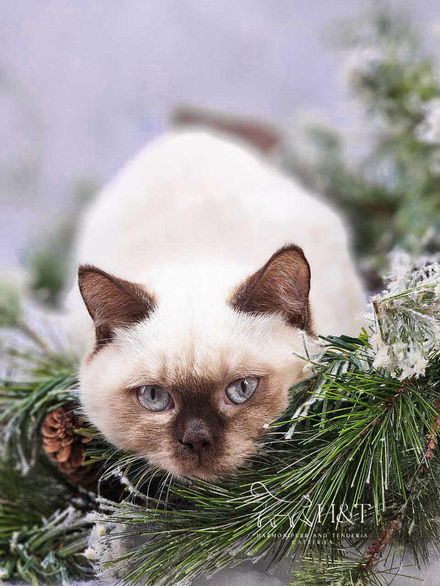 Birma, our cattery's affectionate shadow, is always close behind humans, embodying a gentle femininity with her soft voice and tender demeanor. She's the epitome of a lap cat, exuding friendliness to both humans and her feline companions. Affectionately known as 'little elephant' due to her wide bones, she's a favorite among children and is often referred to as their 'best friend'. A striking feature that sets Birma apart is the unique arrow-like markings around her eyes, resembling makeup artfully applied with a crayon. This distinct trait, coupled with her loving nature, makes Birma not just a cherished member of our feline family, but also a cat with a captivating and memorable presence.